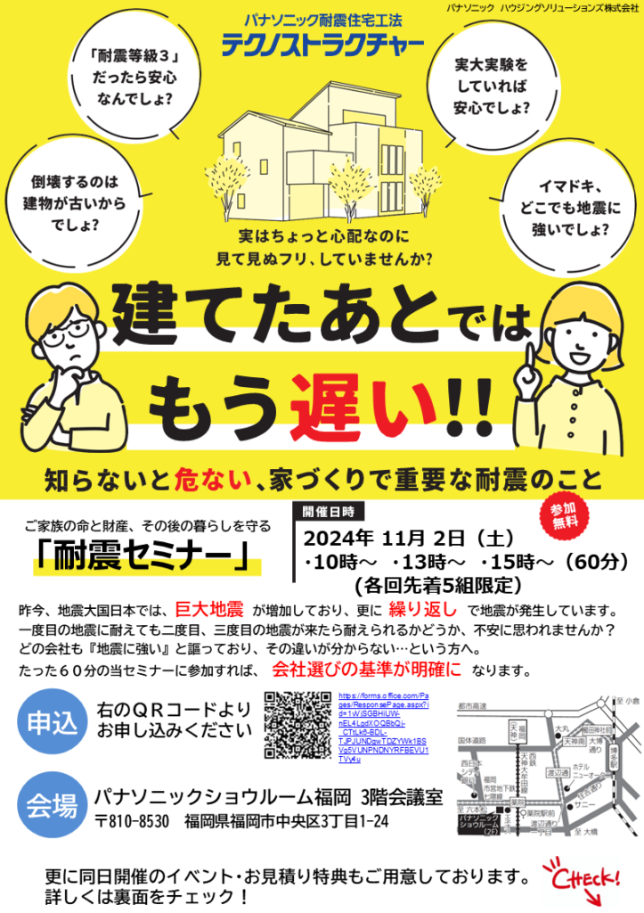 ご家族の命と財産、その後の暮らしを守る「耐震セミナー」