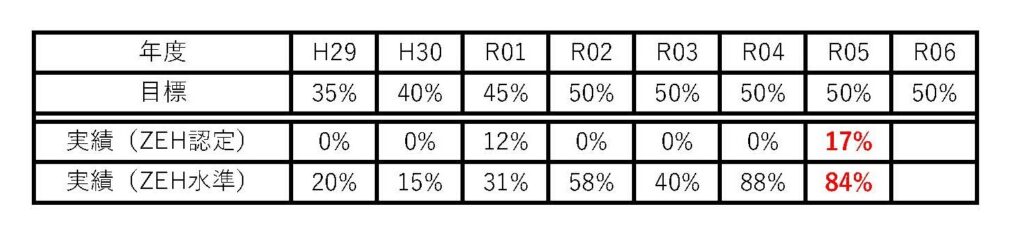 株式会社ナカジマ建設の過年度におけるZEH普及目標に対する実績は次の通りになります。