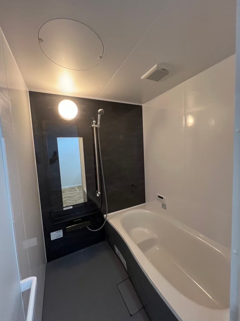ダークカラーの浴室に変身。落ち着いた雰囲気と高級感のある空間に。