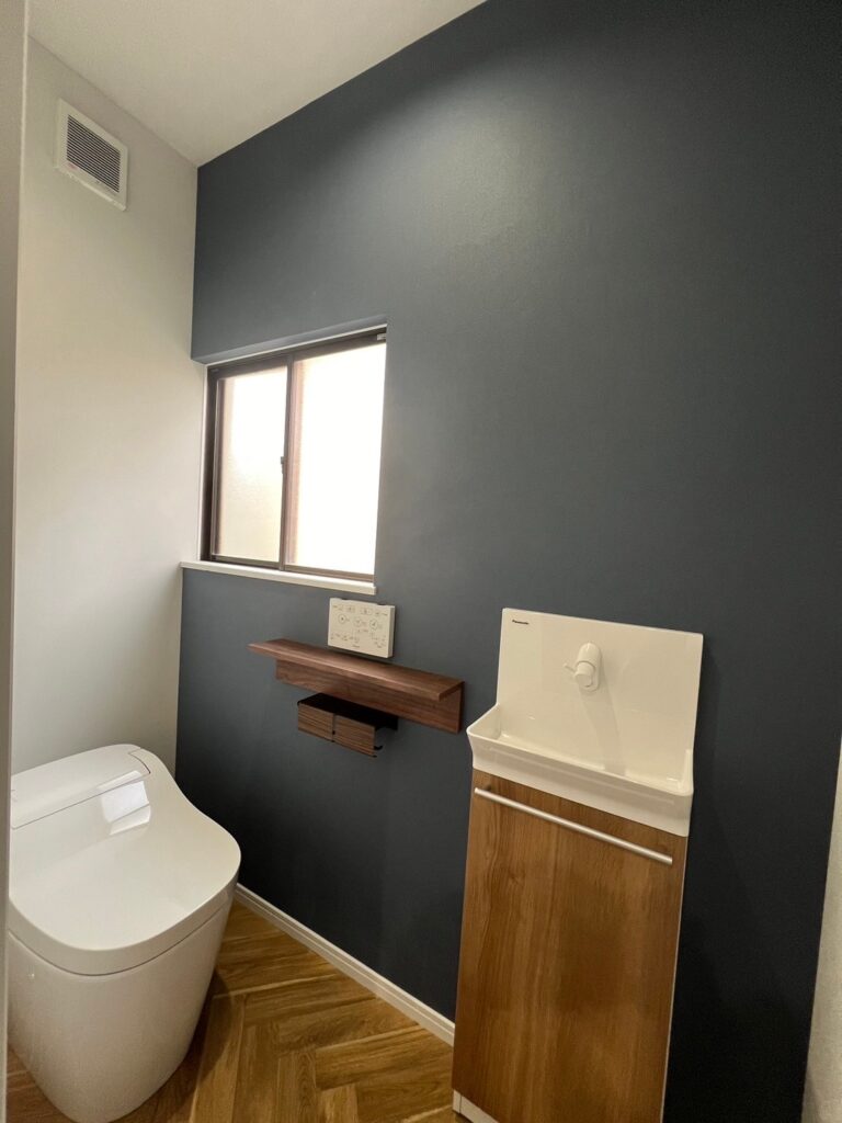 ネイビーのアクセントクロスにより、おしゃれでカッコ良い空間に。