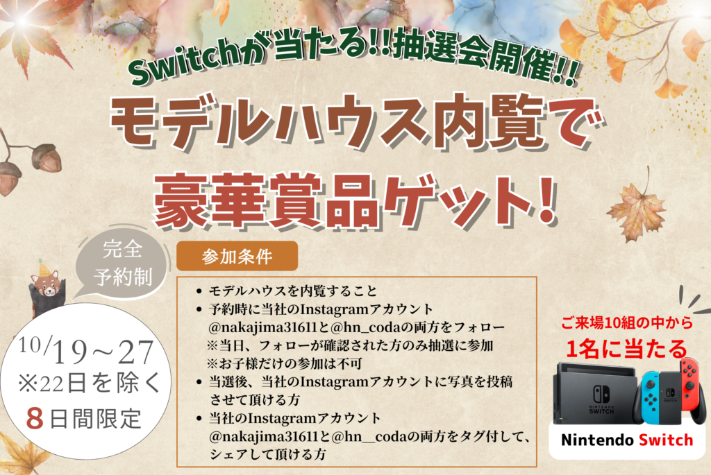 ・予約時に当社のInstagramアカウント@nakajima31611と@hn_codaの両方をフォロー