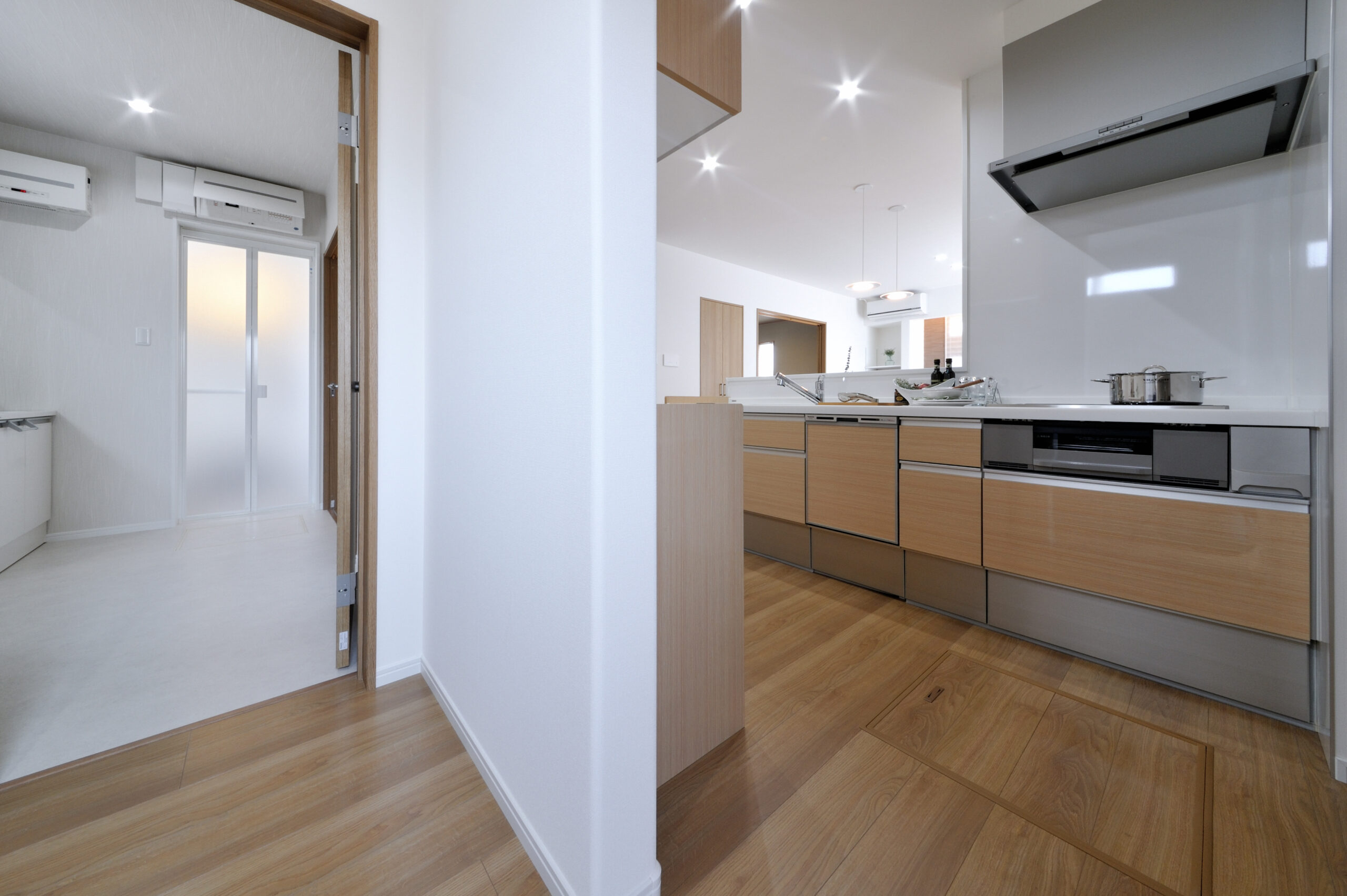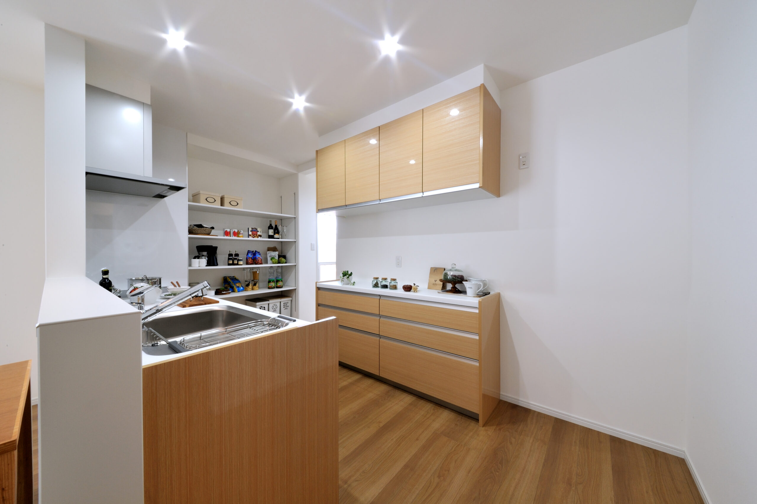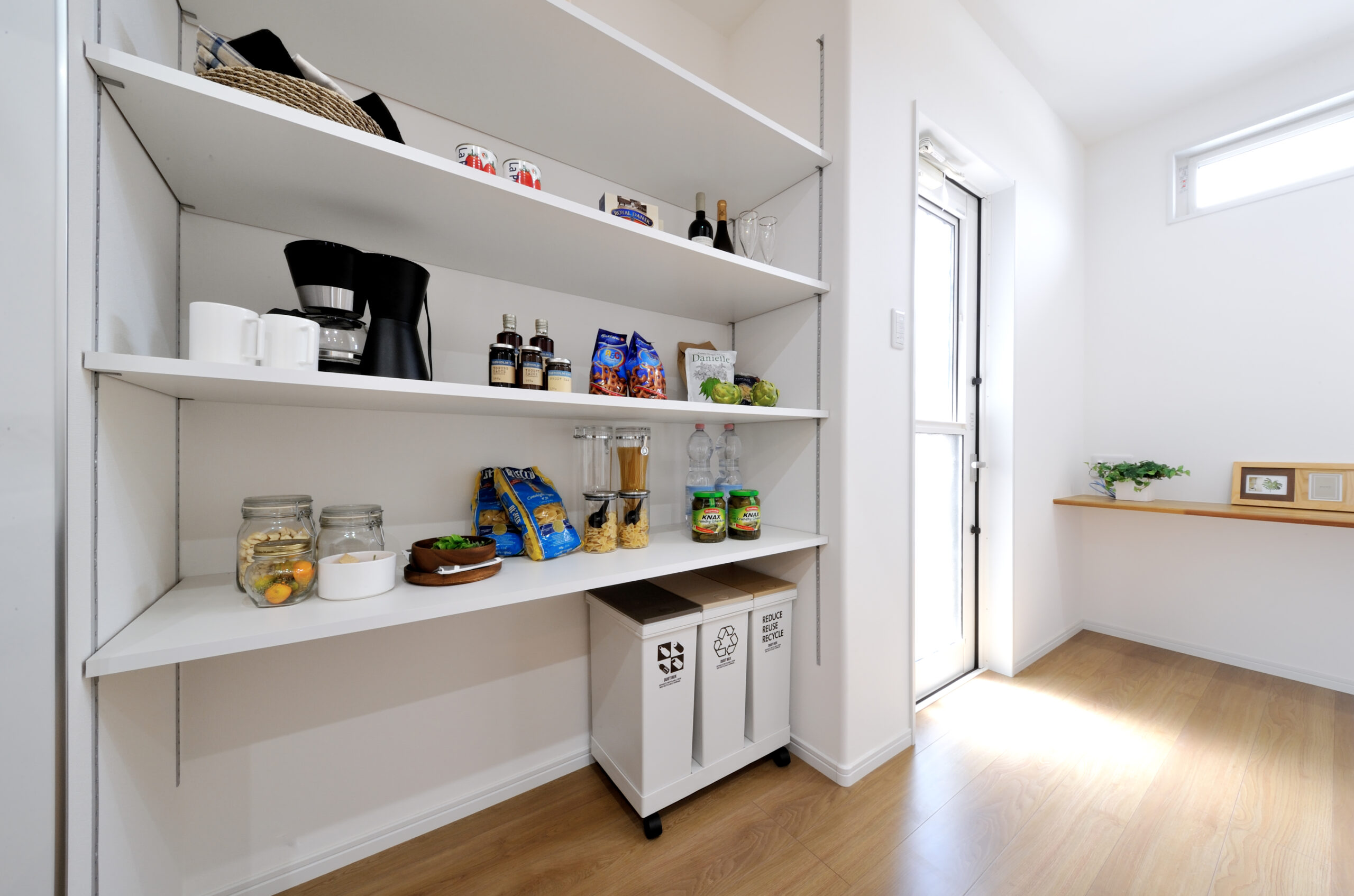 キッチン裏にストックなどを置くことができるパントリー。