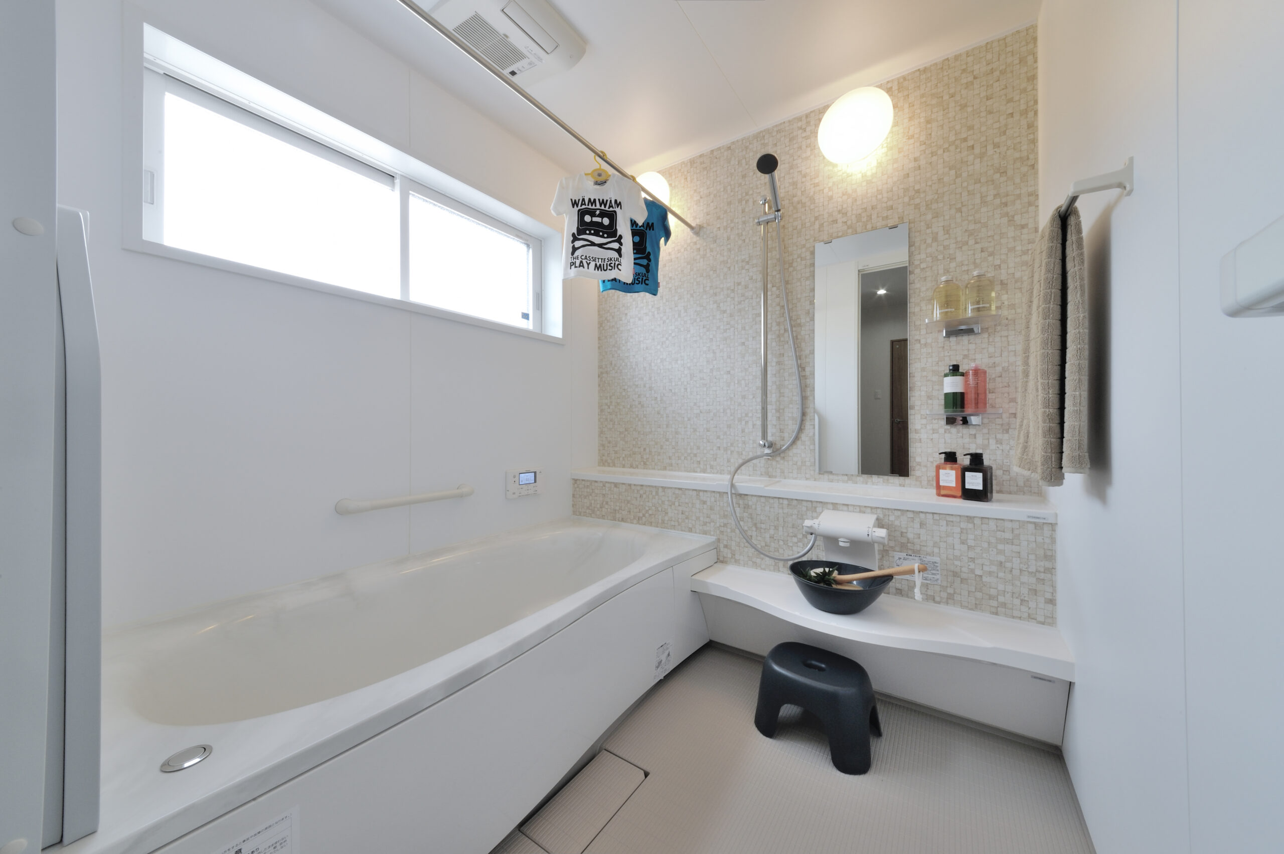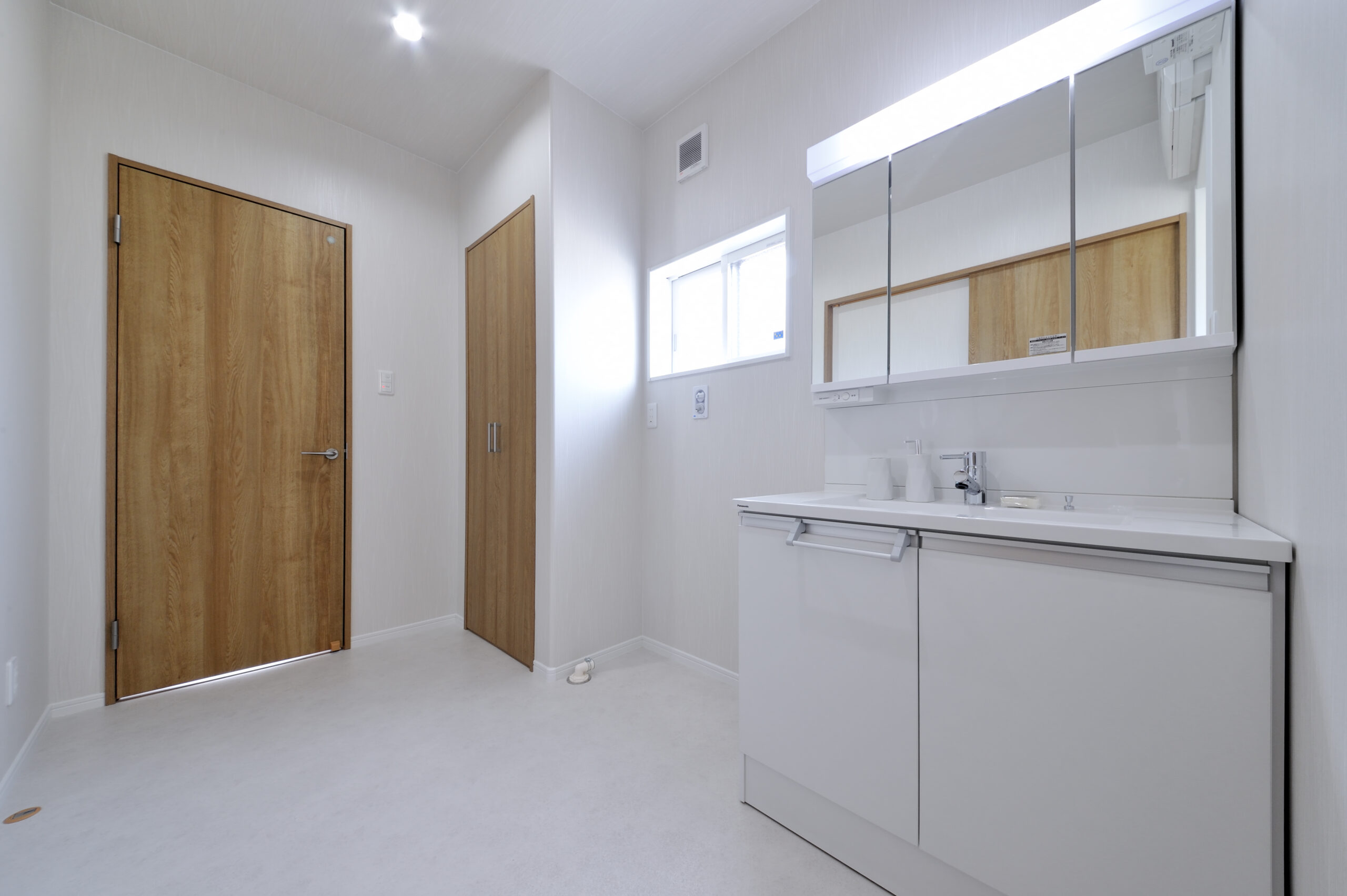 シンプルで清潔感のある洗面所・浴室。