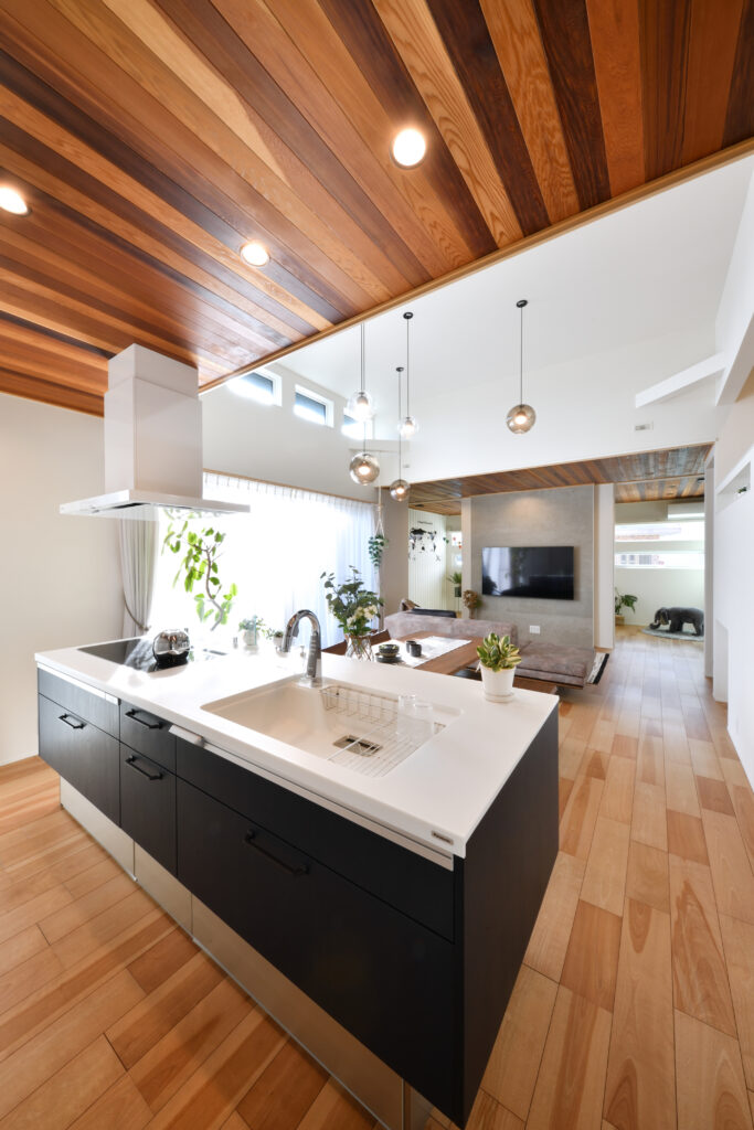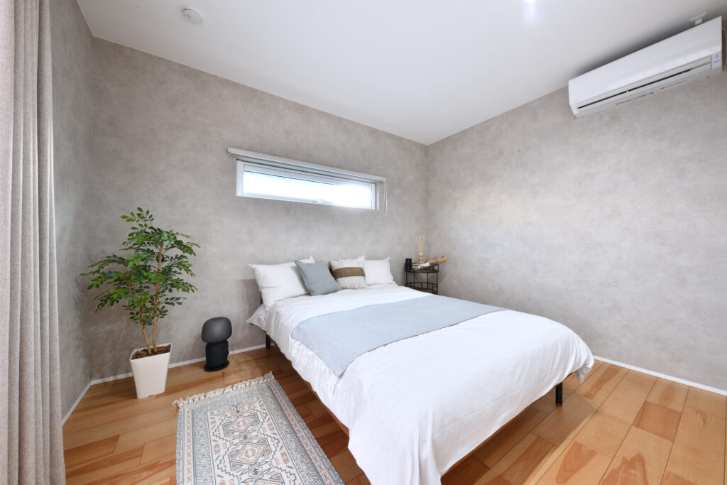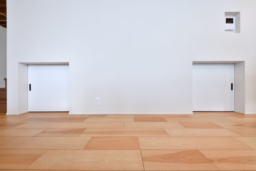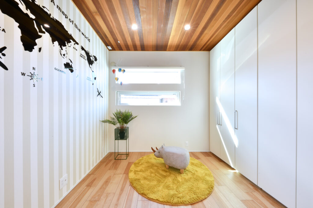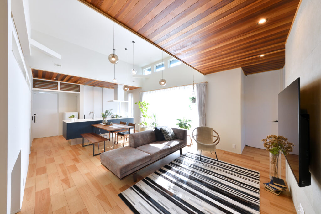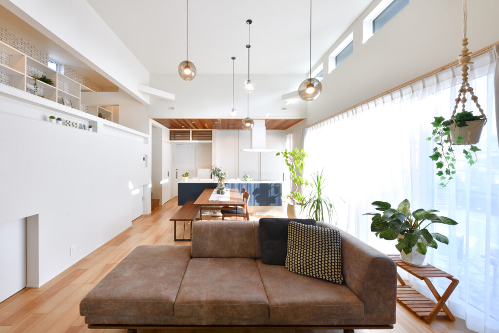 天井付近に設置された窓と大きな掃き出し窓から、太陽の光を部屋の中にたくさん取り入れたつくりに。